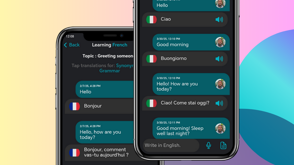 Изучение языка должно быть личным, интересным и таким же простым, как отправка сообщения другу. Это как WhatsApp, но специально для изучения языков. Создавайте темы, которые вам интересны — без ограничений.